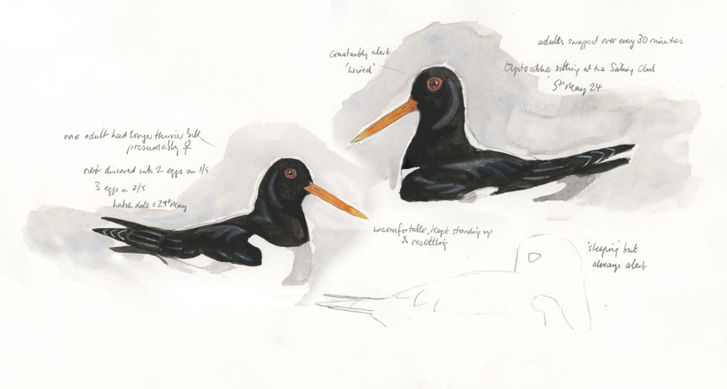 A day when I braved the drizzle. Arriving at 8am I finally succumbed to hopelessly damp optics at 2pm. Ian had seen the returning Oystercatcher near the Warden’s Hut yesterday and so I decided to head to the Sailing Club first. The Oystercatcher was in exactly the same spot as I had seen it last…