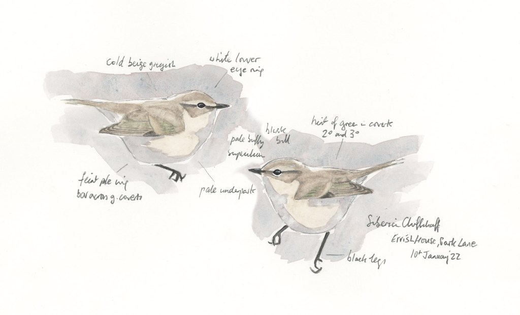 I headed back to the top of Park Lane to try and relocate Monday’s possible tristis chiffchaff. I parked next to Errish House and almost immediately I picked up three Chiffchaffs in the ivy covered trees which stand along the edge of the garden. The first one I photographed looked very pale and I’m pretty…