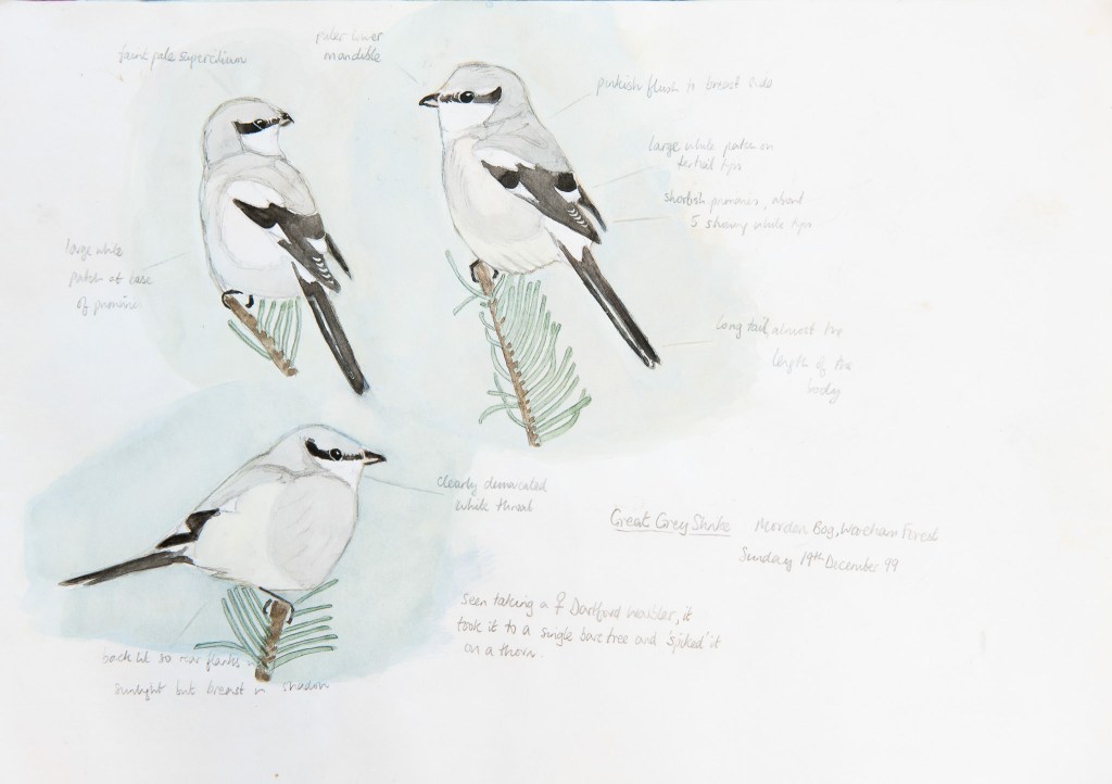 Pencil sketches completed in the field with watercolour added later
