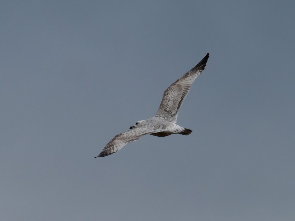 Park Shore gets a few larger gulls mainly Herring Gulls and I often photograph them to double check that other similar but rarer gulls aren’t appearing. On this 2nd winter individual you can see the clear pale window on the inner primaries, brownish (as opposed to blackish) centres to the secondaries, a thick tail band which doesn’t particularly contrast with an off white rump which has dark marks and a head that is not particularly white.