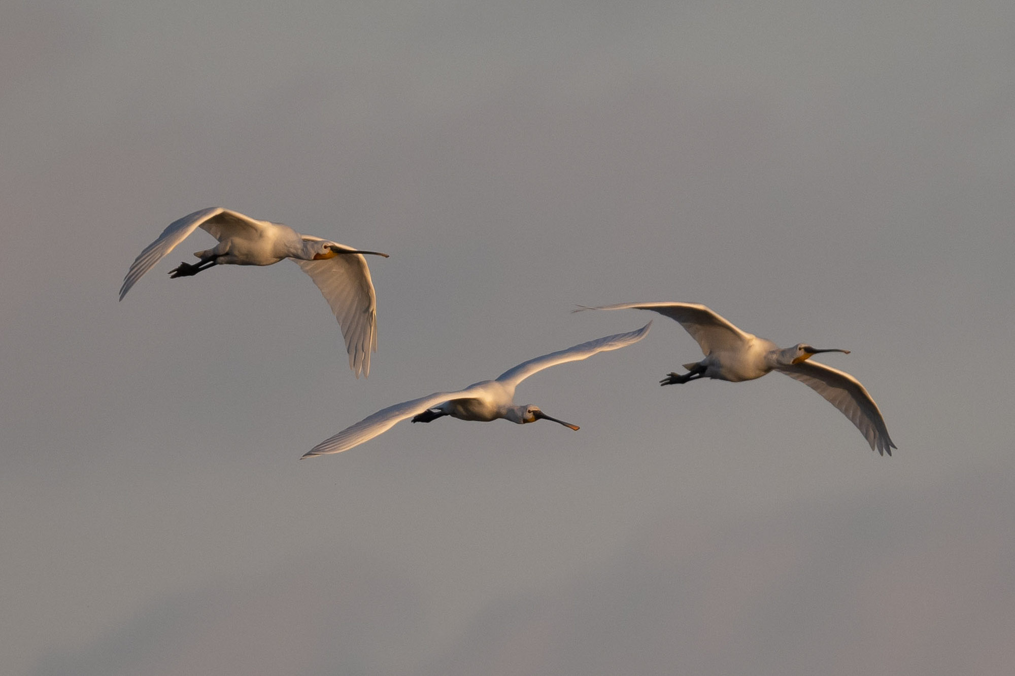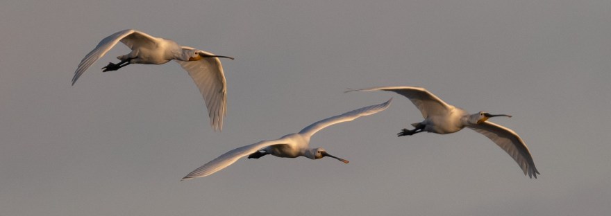 Eight of the Spoonbills headed west past Park Shore and there were at least eight Red-breasted Mergansers just off shore.