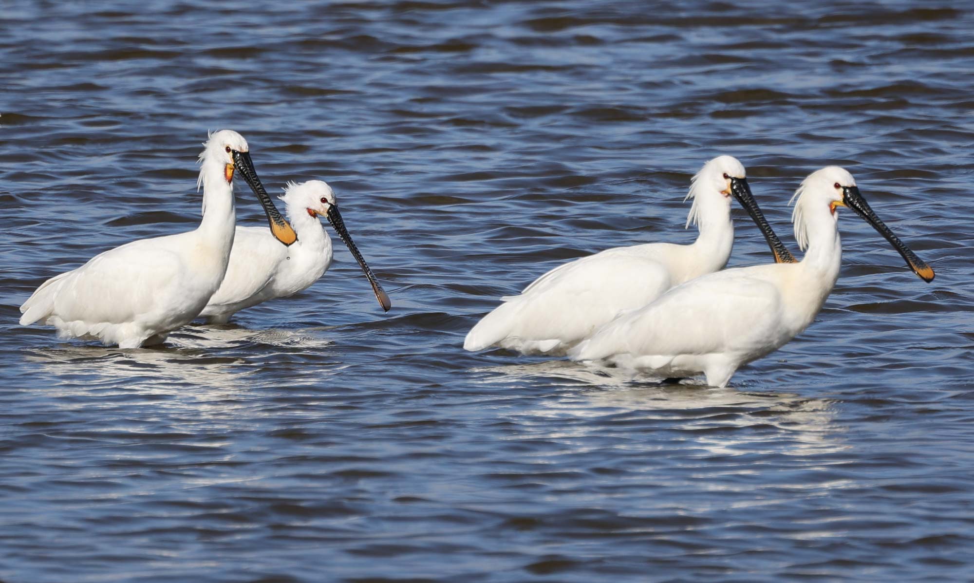 14 Spoonbills showed very well looking nice in the warm afternoon light and lots of Reed Buntings were singing from various wet areas around the reserve.
