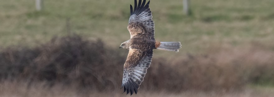 A three year old male Marsh Harrier was seen regularly throughout the month and may be old enough to breed this summer. There was breeding activity around Black Water last year but this may have been younger birds practicing. They did breed locally (east of Lepe) and several juvenile birds visited us in the late summer.