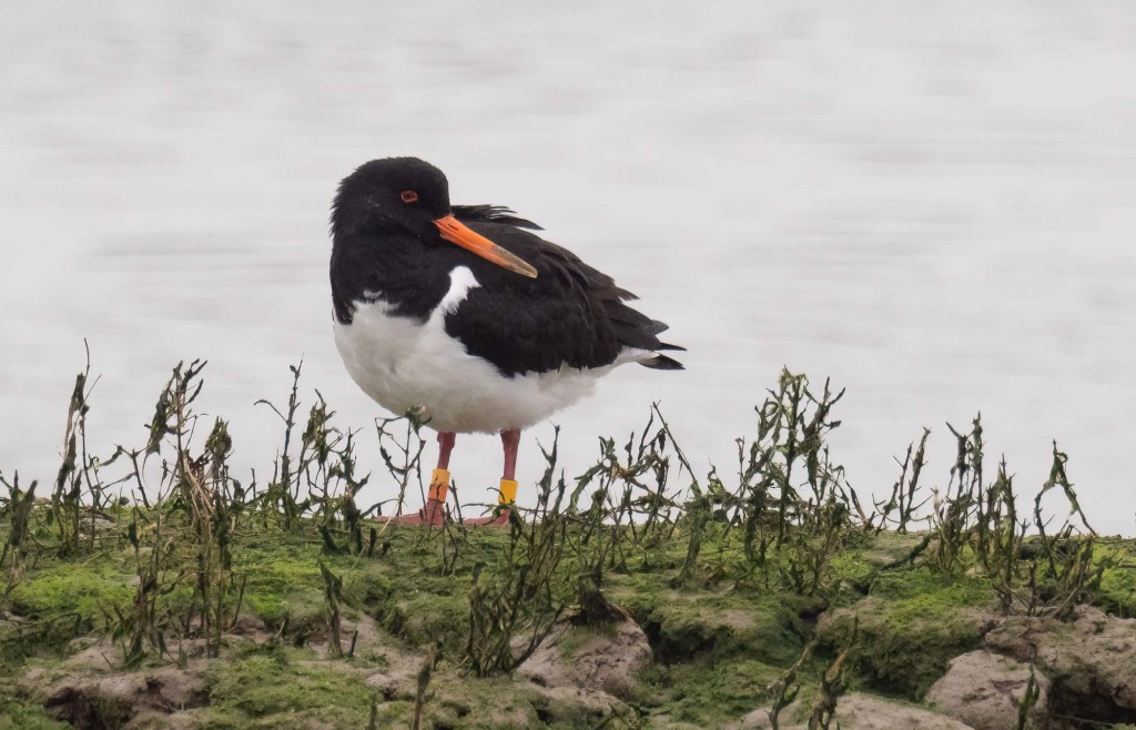 Ian had seen the returning Oystercatcher near the Warden’s Hut yesterday and so I decided to head to the Sailing Club first. The Oystercatcher was in exactly the same spot as I had seen it last year on an island in the Old Spit Channel. The rings are the same other than I couldn’t see the yellow ring on the right tibia. Maybe it was caught up in the feathers or possibly lost altogether since I saw it last June. It was ringed as an adult (not a chick or a 1st summer bird) in 1999 and so is at least 25 years old.