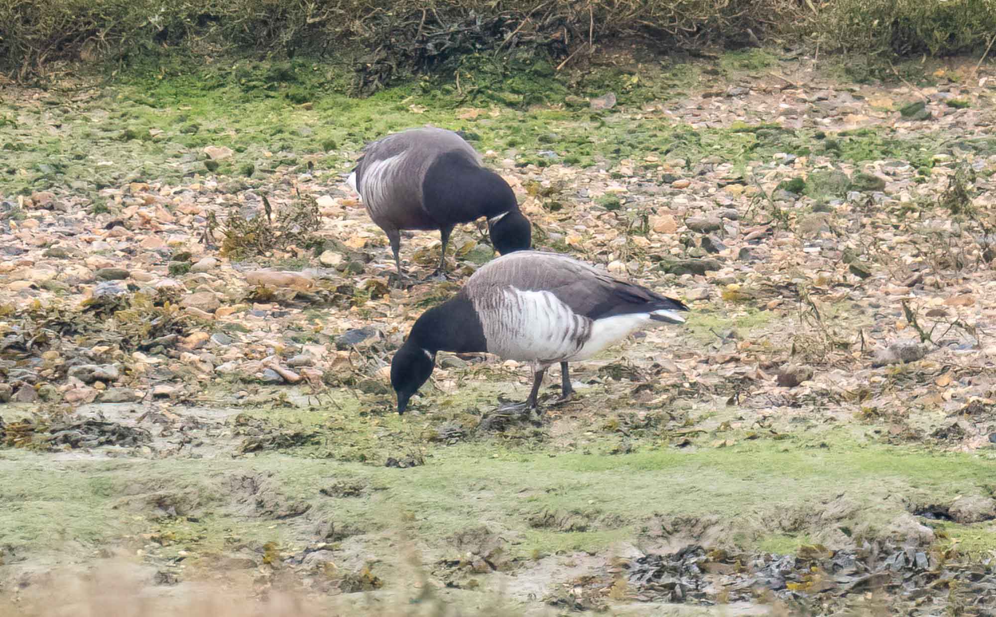 On the far end of Gull Island the 1st year Peregrine was surveying the river. I used the Warden’s Hut as a hide and was able to get closer to the Dark-bellied Brent Geese, they were feeding on the muddy inland edge of the spit and I was pleased to see that the Pale-bellied Brent Goose was amongst them.