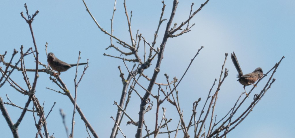 The male Dartford Warbler was still singing in the same patch of gorse in the private areas. I also saw a singing male Dartford Warbler displaying in the gorse 200 yards to the east of there. He had flown in from further east and so if this is the same male he is having to venture further and further afield trying to find a female. At some stage he will give up if he’s not successful.