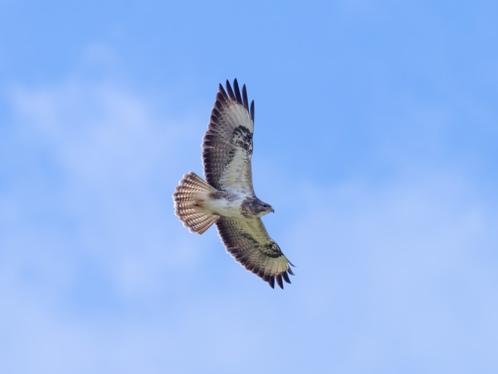 The pale phase Buzzard appeared again looking nicely backlit.